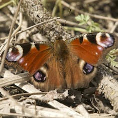 Una mariposa colorida con círculos grandes en forma de ojos de colores únicos. Esta mariposa es de origen europeo y se ha establecido recientemente en el área de Montreal. Aparece temprano en la primavera.